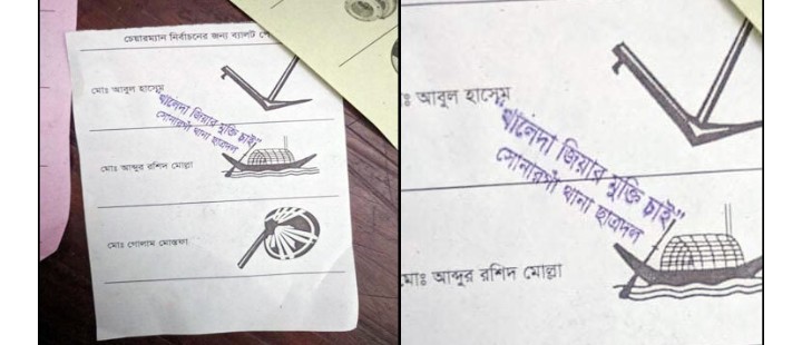 ছবিতে দেখা যায়, ব্যালট পেপারটিতে তিনজন চেয়ারম্যান প্রার্থীর নাম রয়েছে। তারা হলেন-লাঙল প্রতীকের মো. আবুল হাসেম, নৌকা প্রতীকের মো. আব্দুর রশিদ মোল্লা ও হাতপাখা প্রতীকের মো. গোলাম মোস্তফা।