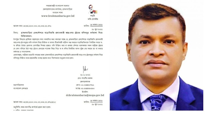ট্রেনের বগি বর্ণমালা দিয়ে চিহ্নিত করতে রেলওয়েকে ব্রাহ্মণবাড়িয়ার ডিসির চিঠি