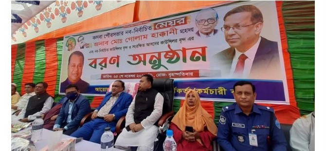শেখ মো. কামাল উদ্দিন,কসবা প্রতিনিধি : কসবায় আজ বৃহস্পতিবার (২৫ নভেম্বর) কসবা পৌরসভার নব-নির্বাচিত মেয়র মো. গোলাম হাক্কানী দায়িত্বভার গ্রহণ করেছেন। সকাল সাড়ে ১০টায় কসবা পৌরসভা কার্যালয়ে তিনি আনুষ্ঠানিকভাবে এই দায়িত্বভার গ্রহণ করেছেন। এ উপলক্ষে কসবা পৌরসভা কার্যালয়ে পৌরসভার কর্মকর্তা ও কর্মচারীবৃন্দ নব-নির্বাচিত মেয়র এবং সাধারণ কাউন্সিলর ও সংরক্ষিত মহিলা কাউন্সিলরবৃন্দের জন্য এক বরণ অনুষ্ঠানের আয়োজন করেন। অনুষ্ঠানে কসবা পৌর সভার সচিব আয়েশা বেগমের সভাপতিত্বে প্রধান অতিথি ছিলেন কসবা উপজেলা আওয়ামীলীগ যুগ্ম আহŸায়ক ও কসবা উপজেলা পরিষদ চেয়ারম্যান এড. রাশেদুল কাওসার ভূইয়া।