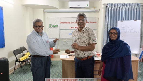 মোঃনিয়ামুল ইসলাম আকঞ্জি,ব্রাহ্মণবাড়িয়া : এসোসিয়েশন ফর ল্যান্ড রিফর্ম অ্যান্ড ডেভেলপমেন্ট (এএলআরডি)-এর আয়োজনে “ভূমি অধিকার ইস্যুতে সাংবাদিকদের ভূমিকা” শীর্ষক দুইদিন ব্যাপী ওরিয়েন্টেশন অনুষ্ঠিত হয়েছে।
