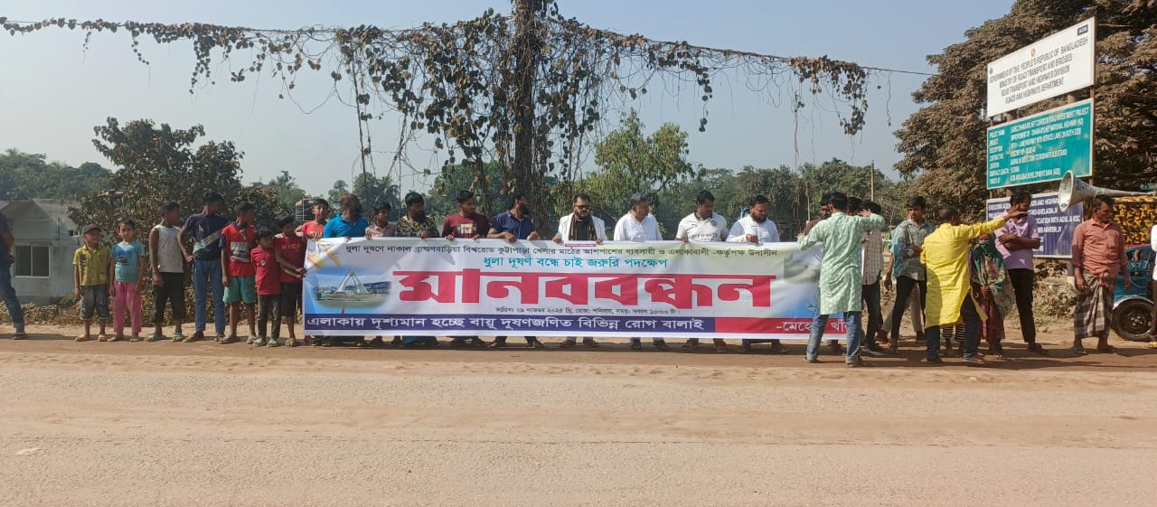 মোঃনিয়ামুল ইসলাম আকঞ্জি,ব্রাহ্মণবাড়িয়া : ধুলা দূষণে নাকাল ব্রাহ্মণবাড়িয়ার সরাইল বিশ্বরোড কুট্টাপাড়া খেলার মাঠ এলাকার ব্যবসায়ী ও এলাকাবাসী—কর্তৃপক্ষ উদাসীন। ধুলা দূষণ বন্ধে জরুরি পদক্ষেপ চাই—এই দাবিতে মানববন্ধন অনুষ্ঠিত হয়েছে।
