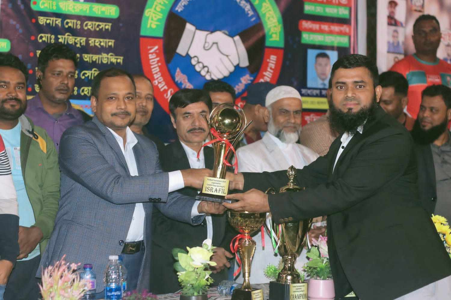 ইসরাফিল হোসাইন এর সঞ্চালনায় পুরস্কার বিতরণী অনুষ্ঠানে বিজয় দল কে পুরস্কার তুলে দেন আয়োজক নাসির উদ্দিন, কামাল উদ্দিন, মোহাম্মদ আইনুল হক, মোঃ সুহেল, ইসরাফিল হোসাইন, বাসু,মোঃ জালাল। উক্ত টুর্নামেন্টে দ্বিতীয় স্থান হয়েছে ইউনাইটেড ফ্রেন্ডস জিদহাপ্স ক্লাব, তৃতীয় স্থান বাংলা ইউনাইটেড এফসি।