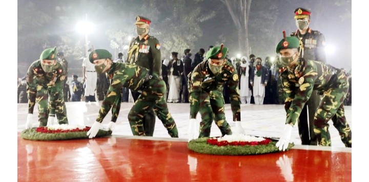 রাষ্ট্রপতি মো. আবদুল হামিদের পক্ষে তার সামরিক সচিব মেজর জেনারেল এস এম সালাহউদ্দিন ইসলাম ও প্রধানমন্ত্রী শেখ হাসিনার পক্ষে তার সামরিক সচিব মেজর জেনারেল নকিব আহমদ চৌধুরী কেন্দ্রীয় শহীদ মিনারে পুষ্পস্তবক অর্পণের মাধ্যমে ভাষা শহীদদের প্রতি শ্রদ্ধা জানান।