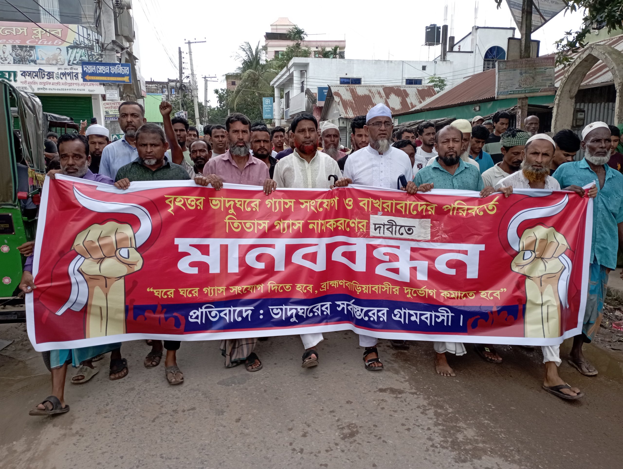 তিতাস নামে গ্যাস বৈধকরণের দাবিতে ব্রাহ্মণবাড়িয়ায় বিক্ষোভ, মহাসড়ক অবরোধ