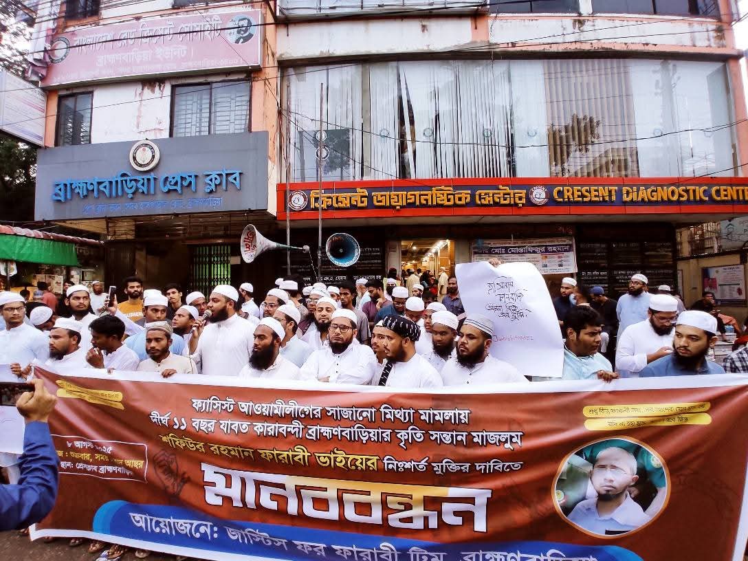 ফারাবির মুক্তির দাবিতে ব্রাহ্মণবাড়িয়ায় মানববন্ধন, মুক্তি না মিললে বৃহত্তর আন্দোলনের হুঁশিয়ারি