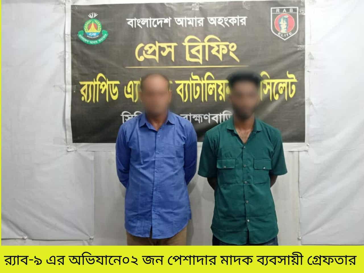 আটক ব্যক্তিরা হলেন— সিলেটের কোম্পানিগঞ্জ উপজেলার পুন্নাছগাঁও গ্রামের দুলাল মিয়া (৪০) এবং গোয়াইনঘাট উপজেলার নন্দীরগাঁও গ্রামের তুহিন হোসেন (২৫)। র্যাব জানায়, তারা সীমান্তবর্তী এলাকা থেকে ফেনসিডিল সংগ্রহ করে ব্রাহ্মণবাড়িয়াসহ দেশের বিভিন্ন জেলায় বিক্রি করত।