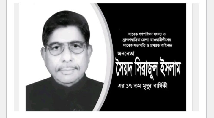 নিউজ ডেস্ক : বৃহস্পতিবার (২৯ সেপ্টেম্বর) মহান মুক্তিযুদ্ধের অন্যতম সংগঠক, বাংলাদেশের সংবিধান প্রণেতাদের অন্যতম, সাবেক গণপরিষদ সদস্য এবং ব্রাহ্মণবাড়িয়া জেলা আওয়ামী লীগের সাবেক সভাপতি ও প্রখ্যাত আইনজ্ঞ সৈয়দ সিরাজুল ইসলাম এর ১৭তম মৃত্যুবার্ষিকী।