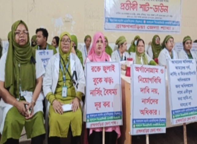 মোঃনিয়ামুল ইসলাম আকঞ্জি,ব্রাহ্মণবাড়িয়া : ব্রাহ্মণবাড়িয়ায় স্বতন্ত্র নার্সিং ও মিডওয়াইফারি অধিদপ্তরকে ভিন্ন অধিদপ্তরে একীভূত করার চেষ্টা বন্ধ এবং জাতীয় নার্সিং কমিশন গঠনসহ আট দফা দাবিতে রবিবার (৩০ নভেম্বর) ২৫০ শয্যা ব্রাহ্মণবাড়িয়া জেনারেল হাসপাতালে প্রতীকী শাটডাউন কর্মসূচি পালন করেছে বাংলাদেশ নার্সেস এসোসিয়েশন (বিএনএ) ব্রাহ্মণবাড়িয়া জেলা শাখা। এসময় তারা প্রতিষ্ঠানে প্রশাসনিক কার্যালয়ের পাশে নার্স ও মিডওয়াইফগণ একত্রিত হয়ে কর্মসূচি পালন করবেন।