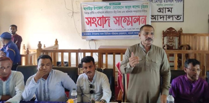 সংবাদ সম্মেলনে আখাউড়া পৌর মেয়র ও উপজেলা আওয়ামী লীগের সাধারণ সম্পাদক মোঃ তাকজিল খলিফা কাজলের সভাপতিত্বে বক্তব্য রাখেন দক্ষিণ ইউনিয়ন চেয়ারম্যান জালাল উদ্দীন, উত্তর ইউনিয়ন চেয়ারম্যান মোঃ শাহজাহান, ধরখার ইউনিয়ন চেয়ারম্যান মোঃ সাফিক, মোগড়া ইউনিয়ন চেয়ারম্যান এম এ মতিন, উপজেলা পরিষদের ভাইস চেয়ারম্যান মুরাদ হোসেন ভুঁইয়া, জেলা পরিষদ সদস্য ও উপজেলা যুবলীগের যুগ্ম আহ্বায়ক আতাউর রহমান নাজিম।