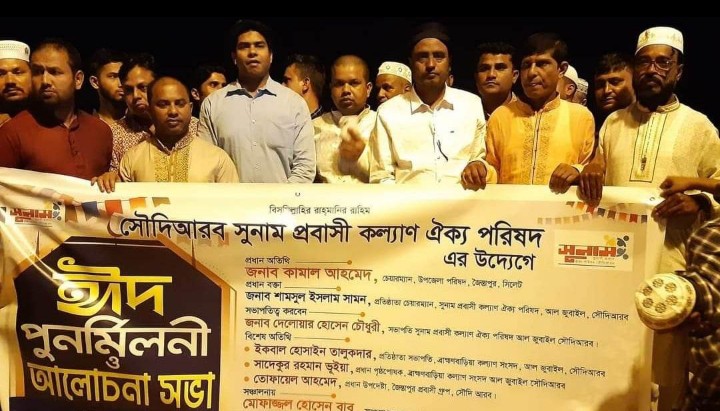 মুখলেছুর রহমান অভি, সৌদি আরব প্রতিনিধি : সৌদি আরবে সুনাম প্রবাসী কল্যাণ ঐক্য পরিষদের উদ্যোগে ঈদ পূর্নমিলনী ও আলোচনা সভা অনুষ্ঠিত হয়েছে। গতকাল রাতে স্থানীয় করনিশ পার্কে সুনাম প্রবাসী কল্যাণ ঐক্য পরিষদের সভাপতি দেলোয়ার হোসেন চৌধুরীর সভাপতিত্বে ও সংঘটনের সাধারণ সম্পাদক মোফাজ্জল হোসেন বাবু ও আবু বকর নোমানের যৌথ সঞ্চালনায় অনুষ্ঠানে প্রধান অতিথি ছিলেন সিলেটের জৈন্তাপুর উপজেলা পরিষদের চেয়ারম্যান কামাল আহমেদ।অনুষ্ঠানে প্রধান বক্তা ছিলেন সুনাম প্রবাসী কল্যাণ ঐক্য পরিষদের প্রতিষ্ঠাতা চেয়ারম্যান, আল জুবাইলের বিশিষ্ট ব্যবসায়ী ও সমাজসেবক শামসুল ইসলাম সামন।বিশেষ অতিথি ছিলেন ব্রাহ্মণবাড়িয়া জেলা প্রবাসী কল্যাণ সংসদের প্রতিষ্ঠাতা সভাপতি ইকবাল হোসাইন তালুকদার, প্রধান পৃষ্ঠপোষক সাদেকুর রহমান ভূঁইয়া, শাহজালাল সিলেট বিভাগীয় প্রবাসী ঐক্য পরিষদের সাবেক প্রতিষ্ঠাতা সভাপতি ছাতির আলী তালুকদার, জৈন্তাপুর প্রবাসী গ্রুপের প্রধান উপদেষ্টা তোফায়েল আহমেদ,সিলেট জেলা প্রবাসী কল্যাণ ঐক্য পরিষদের সভাপতি তোফাজ্জল হোসেন, শাহজালাল সিলেট বিভাগীয় প্রবাসী ঐক্য পরিষদের সিনিয়র সহ সভাপতি শহিদুল ইসলাম, সুনামগঞ্জ জেলা প্রবাসী কল্যাণ ঐক্য পরিষদের সভাপতি কাজী দুলাল হোসেন, চট্টগ্রাম জেলা প্রবাসী ঐক্য পরিষদের উপদেষ্টা সিরাজুল ইসলাম বাহাদুর,ব্রাহ্মণবাড়িয়া জেলা প্রবাসী কল্যাণ সংসদের সাধারণ সম্পাদক সাইদুল ইসলাম এলাহী, নড়াইল জেলা প্রবাসী ঐক্য পরিষদের সভাপতি আবিদ আহমেদ,ইঞ্জিনিয়ার কায়সার আহমেদ জয়, সাংবাদিক মোঃ ফারুক খান, সাংবাদিক জাফর আহমেদ খাঁন, সাংবাদিক মুখলেছুর রহমান অভি, ডালিম খান, শাহ আলম, আলা উদ্দিন সহ আরো অনেকে। শামসুল ইসলাম সামনের ব্যতিক্রমী আয়োজনে দশ ধরনের বাঙালিয়ানা খাবার দিয়ে আমন্ত্রিত অতিথিদের রাতের খাবারে আপ্যায়ন করা হয়। এসময় সুনাম প্রবাসী কল্যাণ ঐক্য পরিষদের নেতৃবৃন্দ সহ আল জুবাইল বসবাসরত বিভিন্ন জেলার নেতৃবৃন্দ এসময় উপস্থিত ছিলেন। এর আগে আমন্ত্রিত অতিথিরা নৈশভোজে অংশ গ্রহণ করেন সবাই।