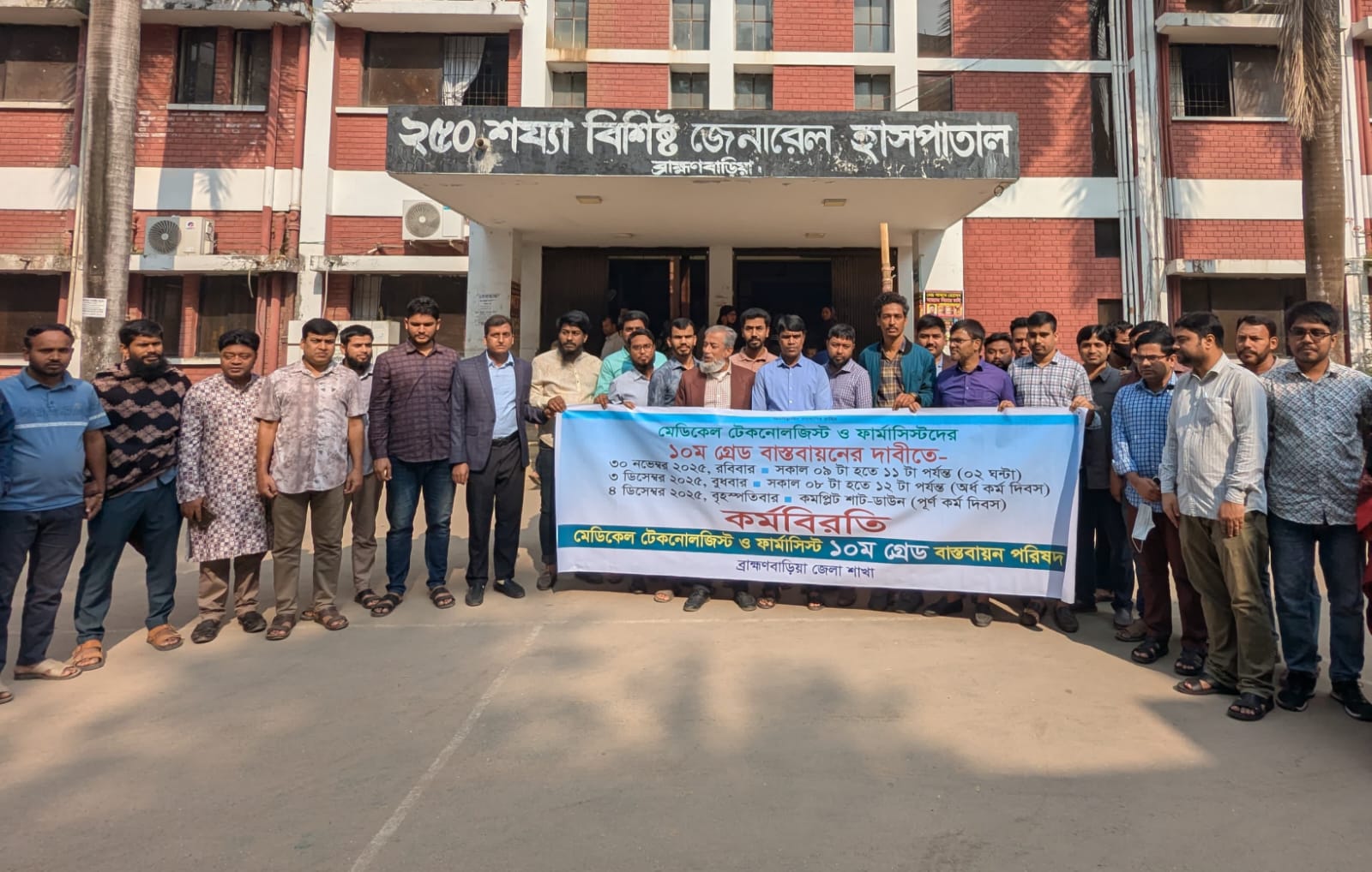 ব্রাহ্মণবাড়িয়ায় মেডিকেল টেকনোলজিস্ট ও ফার্মাসিস্টদের কর্মবিরতি পালন