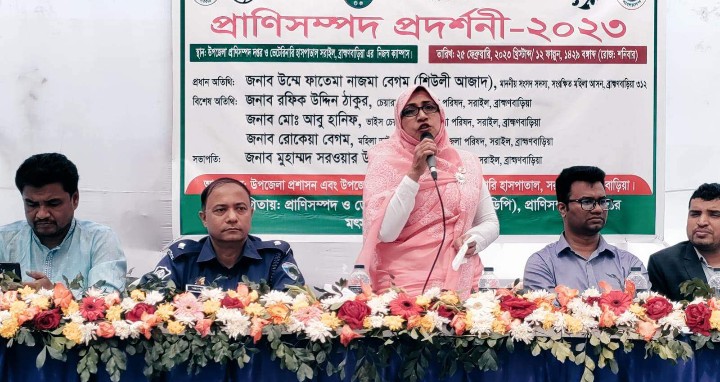 সরাইল উপজেলা নির্বাহী অফিসার মুহাম্মদ সরওয়ার উদ্দীনের সভাপতিত্বে অনুষ্ঠিত প্রাণিসম্পদ প্রদর্শনী সভায় প্রধান অতিথির বক্তব্য দেন মহিলা সংরক্ষিত আসন-৩১২ এর সাংসদ উম্মে ফাতেমা নাজমা বেগম শিউলী আজাদ।