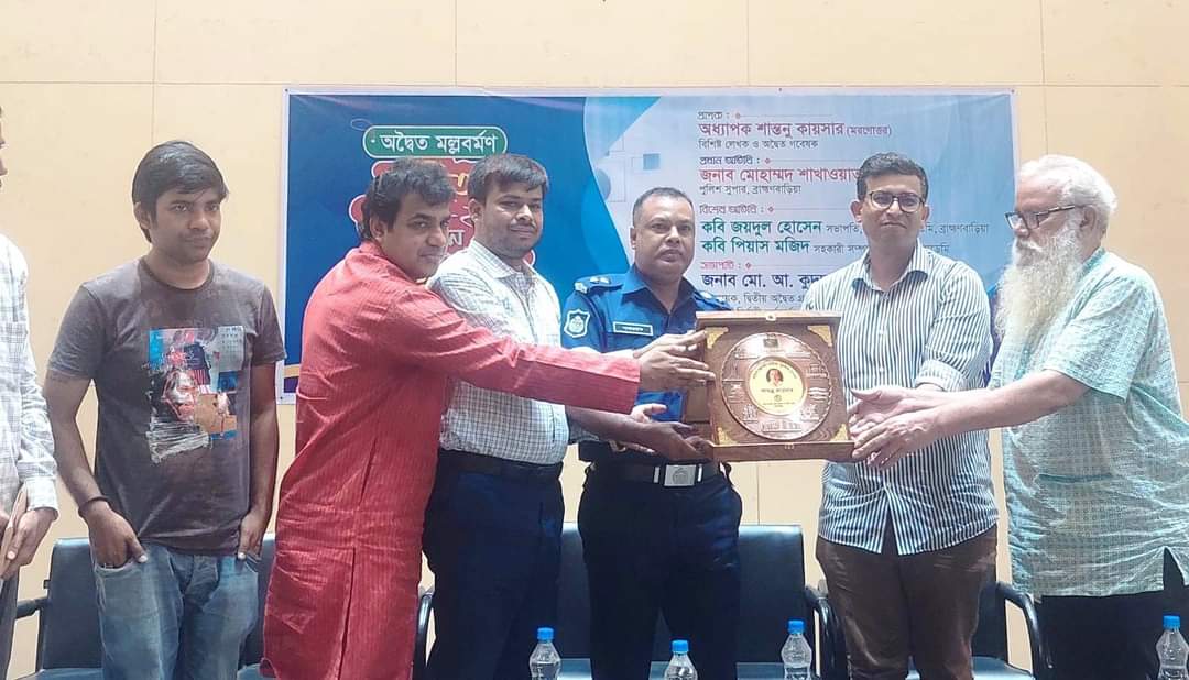 মনিরুল ইসলাম শ্রাবণ : বাংলাদেশে অদ্বৈত চর্চার অন্যতম পথিকৃৎ অধ্যাপক শান্তনু কায়সারকে মরণোত্তর ‘অদ্বৈত মল্লবর্মণ সাহিত্য পুরস্কার’-২০২৪ প্রদান করা হয়েছে। আজ বৃহস্পতিবার (২৩ মে) ব্রাহ্মণবাড়িয়া জেলা শিল্পকলা একাডেমি মিলনায়তনে অনুষ্ঠিত এ অনুষ্ঠানে প্রধান অতিথি হিসেবে উপস্থিত ছিলেন ব্রাহ্মণবাড়িয়ার পুলিশ সুপার মোহাম্মদ শাখাওয়াত হোসেন (পিপিএম)। অদ্বৈত মল্লবর্মণ স্মৃতি গ্রন্থাগার ও গবেষণা কেন্দ্র আয়োজিত অনুষ্ঠানে সভাপতিত্ব করেন গবেষণা কেন্দ্রের প্রতিষ্ঠাতা, ব্রাহ্মণবাড়িয়া পৌরসভার প্রধান নির্বাহী কর্মকর্তা, কবি মো. আ. কুদ্দূস।