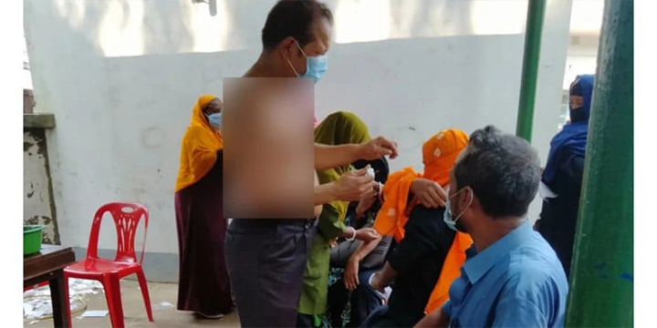 পরনে শুধু প্যান্ট। শার্ট খুলে রেখেছেন। এভাবে খালি গায়ে নারীদের শরীরে দেওয়া হচ্ছে করোনার টিকা। আবার একটু ফাঁকা হলে টিকা দেওয়া কেন্দ্রেই চেয়ারে বসে করছেন ধূমপান। রোববার দুপুরে এমনই চিত্র দেখা গেছে ঝিনাইদহের কালীগঞ্জ উপজেলা স্বাস্থ্য কমপ্লেক্সে।