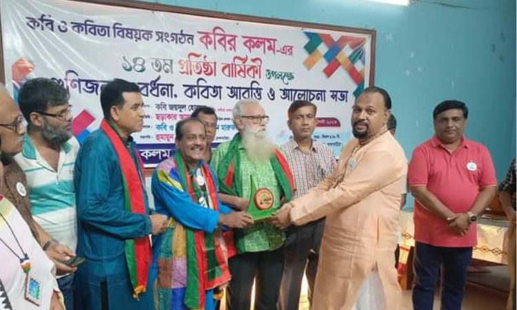 বৃহস্পতিবার (২৪ আগস্ট) বিকাল ৫ টায় ব্রাহ্মণবাড়িয়া গভ: মডেল গার্লস হাই স্কুল হলরুমে কবি ও কবিতা বিষয় সংগঠন ‘কবির কলম’ এর ১৪তম প্রতিষ্ঠা বার্ষিকী অনুষ্ঠানে তাকে এ সম্মাননা স্মারক প্রদান করা হয়।