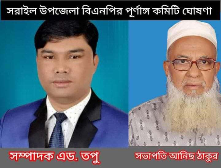 গত সোমবার (২৩শে সেপ্টেম্বর) ব্রাহ্মণবাড়িয়া জেলা বিএনপির আহবায়ক এডভোকেট আব্দুল মান্নান এবং সদস্য সচিব আলহাজ্ব সিরাজুল ইসলাম সিরাজের স্বাক্ষরিত দলীয় প্যাডে বাংলাদেশ জাতীয়তাবাদী দল (বিএনপি) সরাইল উপজেলা শাখার ১০১ সদস্য বিশিষ্ট পূর্ণাঙ্গ কমিটি অনুমোদিত দেন।এতে সভাপতি পদে মো. আনিছুল ইসলাম ঠাকুর ও সাধারন সম্পাদক পদে এড. নুরুজ্জামান লস্কর তপু কে মনোনীত করা হয়।