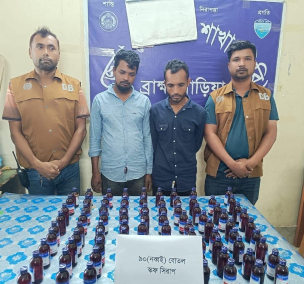 শাহাদাত হোসেন সোহেল,ব্রাহ্মণবাড়িয়া : ব্রাহ্মণবাড়িয়ায় গোপন সংবাদের ভিত্তিতে মাদক বিরোধী এক বিশেষ অভিযান চালিয়ে ৯০ বোতল স্কাফ সিরাপ ও একটি সিএনজি উদ্ধার সহ দুই মাদক কারবারীকে গ্রেফতার করেছে জেলা গোয়েন্দা শাখা পুলিশ( ডিবি)। পুলিশ ও মিডিয়া উইংসের তথ্য মতে, ২ ডিসেম্বর ০১ঃ০৫ মিনিটের দিকে জেলা গোয়েন্দা শাখায় কর্মরত এসআই (নি:) জাহাঙ্গীর মাতুব্বর তার সঙ্গীয় অফিসার ও ফোর্স সহ অভিযান চালিয়ে ব্রাহ্মণবাড়িয়া জেলার সদর থানার বিরামপুর কদমমুড়ির ফরিদ মিয়ার চায়ের দোকানের পশ্চিম পাশে রাঁধিকা টু নবীনগর রোডের পাকা রাস্তার উপর থেকে তাদেরকে গ্রেফতার করে। আসামী দুজন হলেন, মোঃ শামীম ভূইয়া (৩২),পিতা- মৃত সানু ভূইয়া, এবং মাসুম মিয়া (৩৫) পিতা- মৃত আব্দুল বারী উভয় গ্রাম- চাউড়া থানা- বিজয়নগর, জেলা- ব্রাহ্মণবাড়িয়া। এ ব্যপারে ব্রাহ্মণবাড়িয়া গোয়েন্দা শাখার ওসি (ডিবি) মোঃ হুমায়ুন কবীর জানান,গ্রেফতারকৃত আসামীদের বিরুদ্ধে বিচার কার্যের অংশ হিসেবে মাদক আইনে নিয়ম মাফিক মামলা রুজু করা হয়েছে।