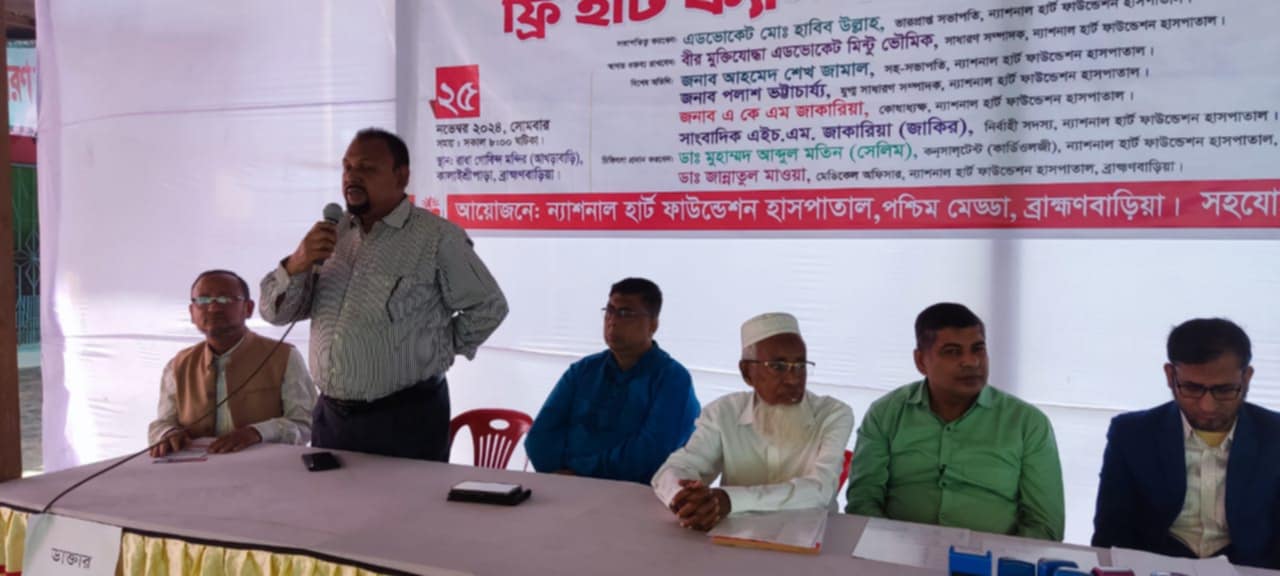 নিজস্ব প্রতিবেদক : ন্যাশনাল হার্ট ফাউন্ডেশন ব্রাহ্মণবাড়িয়া’র আয়োজনে বিনামূল্যে স্বাস্থ্যসেবা প্রদান করা হয়েছে।