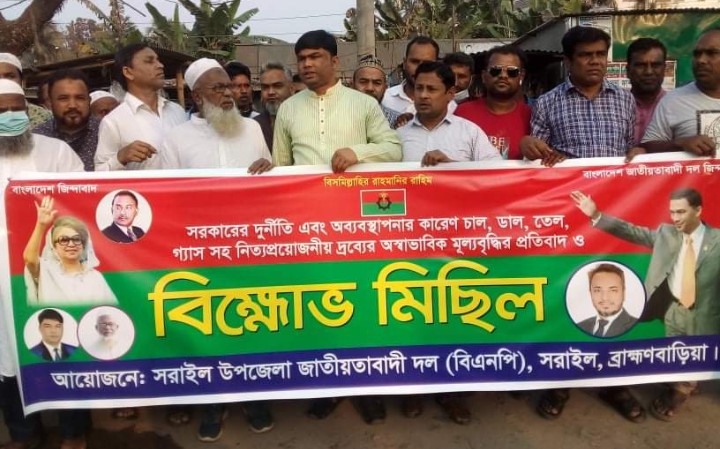 ৫ মার্চ, শনিবার বিকালে সরাইল উপজেলার সদর ইউনিয়নের উচালিয়াপাড়া মোড় এলাকায় উপজেলা বিএনপির আয়োজনে এ বিক্ষোভ সমাবেশ অনুষ্ঠিত হয়।