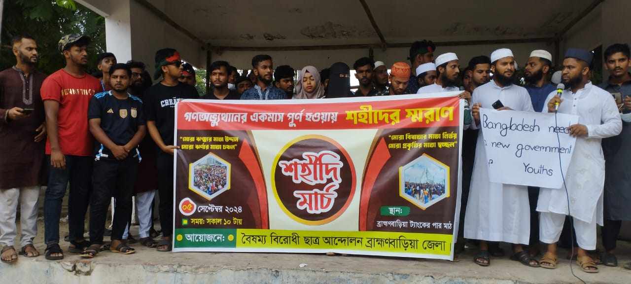 শাহাদাত হোসেন সোহেল,ব্রাহ্মণবাড়িয়া প্রতিনিধি : ছাত্র জনতার গণঅভ্যুত্থানের মধ্য দিয়ে বিগত আওয়ামী সরকারের বিদায়ের একমাস পূর্ণ হওয়ায় শহীদদের স্মরণে কেন্দ্রীয় কর্মসূচির অংশ হিসেবে ব্রাহ্মণবাড়িয়াতেও র্যালি ও আলোচনা সভা অনুষ্ঠিত হয়েছে।আজ ০৫-০৯-২৪ ইং (বৃহস্পতিবার ) দুপুরে শহরের প্রানকেন্দ্র লোকনাথ দিঘির পাড় ( টেংকেরপাড় )মাঠে বৈষম্য বিরোধী ছাত্র আন্দোলনের ব্যানারে শহীদি মার্চের এই কর্মসূচির আয়োজন করা হয়। কর্মসূচীতে বিভিন্ন শিক্ষা প্রতিষ্ঠানের শিক্ষার্থীরা অংশগ্রহন করেন। এসময় ইসলামী আন্দোলন বাংলাদেশ ব্রাহ্মণবাড়িয়া শাখার সাধারণ সম্পাদক গাজী মোঃ নিয়াজুল করিম, শিক্ষার্থী দূর্জয় মাহমুদ, আল মামুন, আবু বাশার সানি,রেহেনা বোশরা, মুনিয়া, রিয়াদুল ইসলাম প্রমূখ বক্তব্য রাখেন। সভায় বক্তারা তাদের বক্তব্যে শ্রদ্ধার সাথে সকল আত্মত্যাগী ও গণঅভ্যুত্থানে আন্দোলনকারী সকল শহীদ ও আহতদের প্রতি শ্রদ্ধা রেখে বলেন,গণঅভ্যুত্থানের আন্দোলনে আওয়ামীলীগ সরকারও তার বাহিনী ছাত্রদের উপর নির্বিচারে যে হত্যাযজ্ঞ ও নির্যাতন চালিয়েছে তা পৃথিবীর ইতিহাসে একটি বিরল ঘটনা।তারা বলেন, ভবিষ্যতে দেশে যে বা যারা ই সরকার গঠন করুক এসব ঘটনার সঠিক তদন্ত করে দোষীদের দ্রুত বিচারের আওতায় এনে বিচার নিশ্চিত করতে হবে। অন্যথায় তারা কঠোর কর্মসূচি দেয়ার হুংকার দেন। এছাড়াও বক্তারা বলেন, এদেশে এখন আর কোন বৈষম্যের স্থান হবে না।তাই যারা দেশে পুণরায় বৈষম্যের সৃষ্টি করতে চাইবে তাদেরকে আওয়ামীলীগ সরকারের পতন থেকে শিক্ষা ও অভিজ্ঞতা নেওয়ার আহ্বান জানান। একটি মহল ছাত্রদের বিরুদ্ধে নানানভাবে অপপ্রচার রটাচ্ছে উল্লেখ করে তারা বলেন, ধ্বংস নয় বরং আজ শিক্ষার্থীরা একটি বৈষম্যমুক্ত দেশ গড়তে মাঠে নেমেছে। তাই সকল অপপ্রচার থেকে তারা সকলকে সতর্ক থাকার কথা উল্লেখ করেন। পাশাপাশি একটি সুন্দর ও সমৃদ্ধ বাংলাদেশ গঠনে সবাইকে এগিয়ে আসারও আহ্বান জানান।বক্তব্য শেষে তারা তাদের ব্যানারে একটি র্যালী বের করেন।র্যালীটি টেংকের পাড় থেকে বের হয়ে শহরের প্রধান সড়ক প্রদক্ষিণ করে ব্রাহ্মণবাড়িয়া প্রেসক্লাবের সামনে গিয়ে সমাপ্তি ঘোষণা করে।