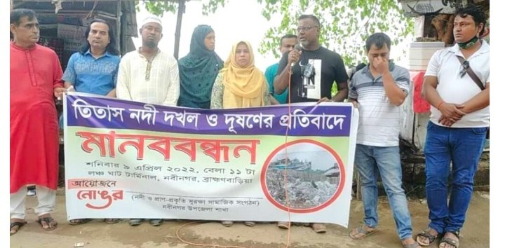 মানববন্ধনে বক্তারা তিতাস নদী দখল ও দূষণকারীদের চিহ্নিত করে আইনের আওতায় আনা ও নদীর সীমানা নির্ধারণ করার জোর দাবী জানান।