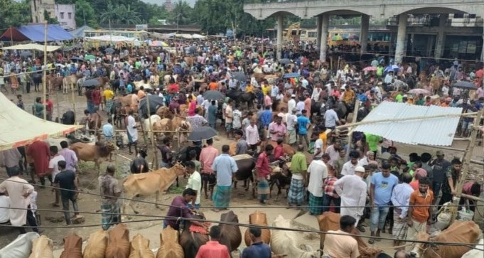 আজ শুক্রবার সকাল থেকে রাত পর্যন্ত ঘুরে জেলা শহরের ভাদুঘর পৌর বাস টার্মিনাল পশুরহাটে ঘুরে দেখা গেছে, ঈদের আর একদিন বাকি থাকলেও হাটে গরুর সংখ্যা কম। বড় গরুর সংখ্যা তুলনামূলক বেশি থাকলেও ছোট ও মাঝারি গরুর সংকট রয়েছে। ক্রেতার তুলনায় হাটে গরু অনেক কম। পাশাপাশি দেখা গেছে পাইকারি ব্যাপারীরা ব্যবসায়ীরা গ্রাম থেকে কৃসকদের আনা গরু কিনছেন। আবারও সেই গরু এই হাটেই উচ্চ মূল্যে বিক্রয় করছেন।বিক্রেতাদের ভাষ্য, এখনো বাজার সেভাবে জমে ওঠেনি। অন্যান্য বছর ঈদের মাঝে একদিন আগের বাজারে সবচেয়ে বেশি উঠেম এবং ক্রয়-বিক্রয় বেশি হয়। কিন্তু এবার বাজারে যাঁরা আসছেন, তাঁদের হাতে গোনা কয়েকজনই গরু কিনছেন। ক্রেতা দামদর জিজ্ঞেস করতে আসছেন। অনেকেই আবার পর দিন ক্রয় করবেন বলে ফিরে যাচ্ছেন।