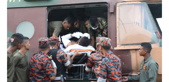 এতে বলা হয়েছে, ফায়ার সার্ভিসের গুরুতর দুই কর্মীকে চট্টগ্রাম থেকে এয়ার অ্যাম্বুলেন্সে করে ঢাকায় আনা হচ্ছে। এ ছাড়াও গুরুতর অবস্থায় চিকিৎসাধীন রয়েছেন আরও অন্তত ১৫ জন।