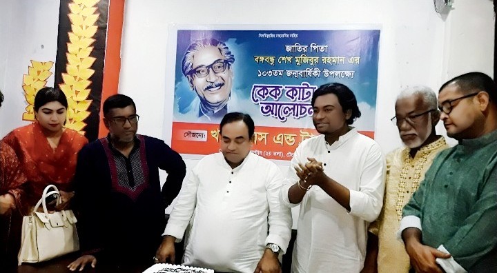 নিজস্ব প্রতিবেদক : জাতির পিতা বঙ্গবন্ধু শেখ মুজিবুর এর ১০৩তম জন্মবার্ষিকী উপলক্ষে খান ট্যুরস এন্ড ট্রাভেলসের উদ্যোগে কেক কাটা ও আলোচনা সভা অনুষ্ঠিত হয়েছে।
