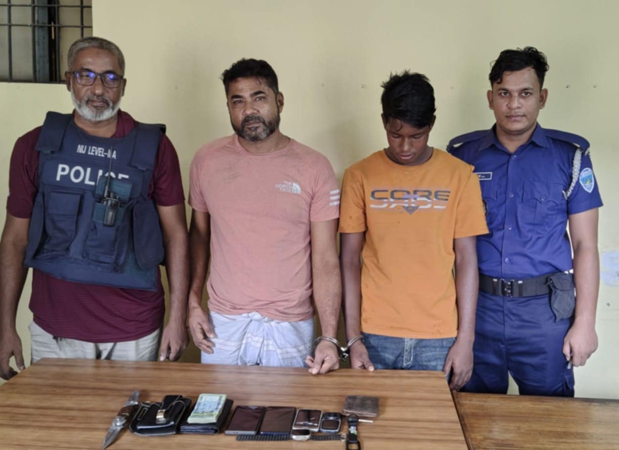 শাহাদাত হোসেন সোহেল,ব্রাহ্মণবাড়িয়া : ব্রাহ্মণবাড়িয়া নবীনগরে গোপন সংবাদের ভিত্তিতে পুলিশের বিশেষ অভিযানে একাধিক মামলার আসামী কুখ্যাত ডাকাত মনেক (৫৩) ও তার সহযোগী মোঃ সুমন (১৮) কে গ্রেফতার করেছে থানা পুলিশ। শনিবার (১২ অক্টোবর) ভোর সাড়ে ৩টার দিকে উপজেলার বড়িকান্দি ইউনিয়নের নুরজাহানপুর গুচ্ছগ্রাম আশ্রয়ন প্রকল্পের ৪৭নং বাসা থেকে তাদেরকে গ্রেফতার করা হয়। গ্রেফতারকৃত মনেক মৃত সুধন মিয়া এবং সুমন কালা মিয়ার ছেলে। তাদের দুজনের বাড়ি উপজেলার বড়াইল গ্রামে। ব্রাহ্মণবাড়িয়া জেলা পুলিশের মিডিয়া উইংসে পাঠানো এক প্রেস বিজ্ঞপ্তি থেকে এ তথ্য নিশ্চিত হওয়া যায়। বিজ্ঞপ্তিতে বলা হয়, নবীনগর থানার এসআই নিজাম উদ্দিন, এসআই শামীম ভুইয়া ও এসআই কামাল উদ্দিন মজুমদার ভোররাতে ওই গুচ্ছগ্রামে অভিযান পরিচালনা করে তাদেরকে গ্রেফতার করে। এ সময় তাদের কাছ থেকে ১টি ছোড়া, নগদ ৪০ হাজার টাকা, ১টি মোটরসাইকেল ও ৪টি মোবাইল ফোন উদ্ধার করা হয়। পরবর্তীতে তাদের বিরুদ্ধে নবীনগর থানায় ৩৯৯/৪০২ ধারার নতুন একটি মামলা হয়,মামলা নং- ১৮। বিজ্ঞপ্তিতে আরো জানা যায়, মনেক ডাকাতের নামে এর আগে চুরি, ডাকাতি, ছিনতাইসহ মাদকদ্রব্য ও বিষ্ফোরক দ্রব্য আইনে আরও মোট ১১টি মামলা চলমান রয়েছে।
