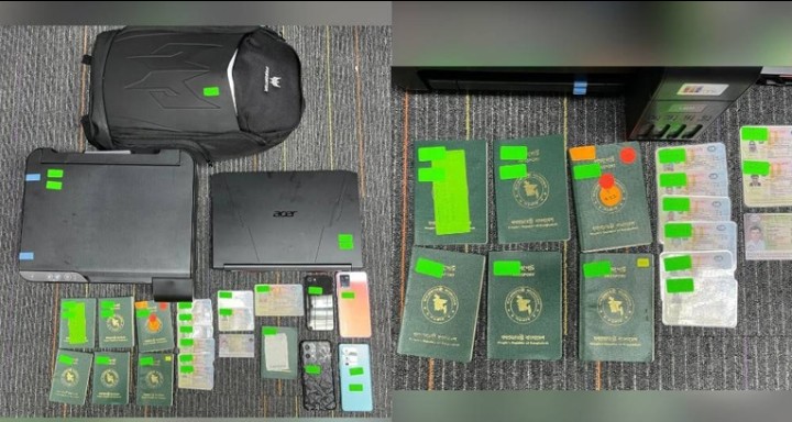 এ সময় তাদের কাছ থেকে ভুয়া ১০টি ওয়ার্ক পারমিটযুক্ত পাস, একটি করে ল্যাপটপ ও প্রিন্টার এবং নির্দিষ্ট ওয়ার্ক পারমিট ইস্যুর উদ্দেশ্যে ব্যবহৃত চারটি মোবাইল ফোনসহ বেশ কিছু সরঞ্জাম জব্দ করা হয়েছে।