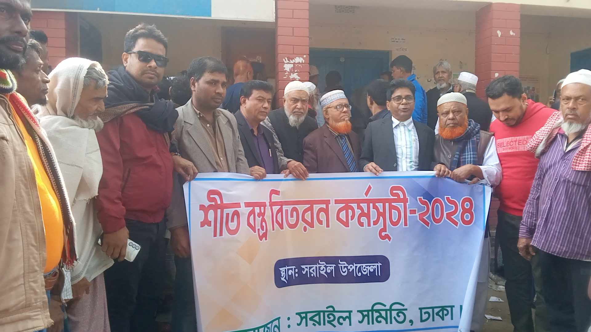 সরাইল সদর ইউনিয়ন পরিষদ প্রাঙ্গণে কম্বল বিতরণ করেন সরাইল সমিতির সদস্যবৃন্দরা। কম্বল বিতরণকালে উপস্থিত ছিলেন, উক্ত সমিতির সভাপতি প্রকৌশলী মো. শাহজাহান, সহ-সভাপতি আতাউল করিম আজিম, সহ-সাধারন সম্পাদক তৌফিক আহমেদ তফসির, সাংগঠনিক সম্পাদক নাজিম উদ্দিন ভাসানী, প্রচার সম্পাদক মো. জসিম খান,সাহিত্য ও স্বাংকৃতিক সম্পাদক মো. শাহিন বক্স, ছাত্র বিষয়ক সম্পাদক ইফতেখার আহমেদ চৌধুরী সজিব, সহ-সমাজ কল্যাণ সম্পাদক আব্দুল মোবারক। এছাড়াও উপস্থিত ছিলেন, উপজেলা আওয়ামী লীগের সাবেক যুগ্ম আহ্বায়ক ও বীর মুক্তিযোদ্ধা এড. আব্দুর রাশেদ, সাংবাদিক আইয়ুব খান, সাংবাদিক এসকে ইউসুফ, শাহবাজপুর বহুমূখী উচ্চবিদ্যালয়ের প্রধান শিক্ষক মোহাম্মদ আলী প্রমুখ উপস্থিত ছিলেন।