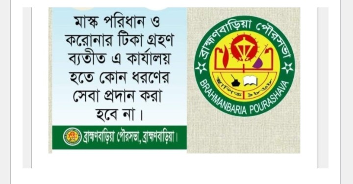 সেবাগ্রহীতাদের জন্য করোনাভাইরাসের টিকাগ্রহণের সনদ প্রদর্শন বাধ্যতামূলক করার সিদ্ধান্ত নিয়েছে ব্রাহ্মণবাড়িয়া পৌরসভা কর্তৃপক্ষ।