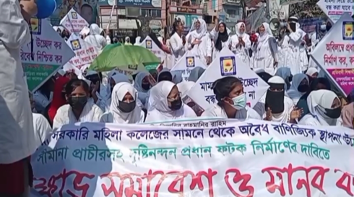 কলেজের মূল ফটকের জায়গা দখল করে গড়ে ওঠা দোকানপাট সরানোর দাবিতে রবিবার (২৬ অক্টোবর) বেলা ১১ টা থেকে দুপুর পৌনে ২ টা পর্যন্ত রাস্তায় নেমে আসে ছাত্রীরা। বিক্ষোভ করে প্রাধান সড়ক অবরোধ এবং আগুন জ্বালিয়ে ঘণ্টার পর ঘণ্টা আন্দোলন চালায়। ফলে সারা শহরজুড়ে সৃষ্টি হয় তীব্র যানজট ও জনভোগান্তি।