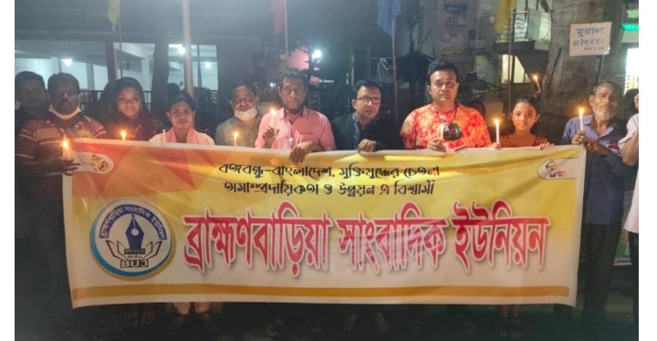 ২৫ মার্চ গণহত্যা দিবস উপলক্ষে ব্রাহ্মণবাড়িয়া মোমবাতি প্রজ্বলন কর্মসূচী পালন করেছে ব্রাহ্মণবাড়িয়া সাংবাদিক ইউনিয়ন। শুক্রবার সন্ধ্যা সাড়ে ৬ টায় শহরের বঙ্গবন্ধু স্কয়ারের জেলা প্রশাসনের কর্মসূচীর সাথে সংহতি জানিয়ে এ কর্মসূচী পালন করা হয়।