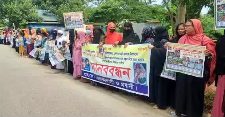এসময় বক্তারা বলেন, পূর্ব বিরোধের জের ধরে স্থানীয় মলাই মিয়া, খসরু, মামুনসহ তাদের সন্ত্রাসীবাহিনী পরিকল্পীতভাবে খোকনকে নৃশংসভাবে হত্যা করেছে। ঘটনায় জড়িতরা বিভিন্ন অপরাধের সাথে জড়িত। বক্তারা, এই হত্যাকান্ডের সাথে জড়িতদের দৃষ্টান্ত মূলক শাস্তির দাবি জানান। মানববন্ধনে নারী-পুরুষসহ নানা শ্রেণী পেশার ৩শতাধিক মানুষ অংশগ্রহণ করে।