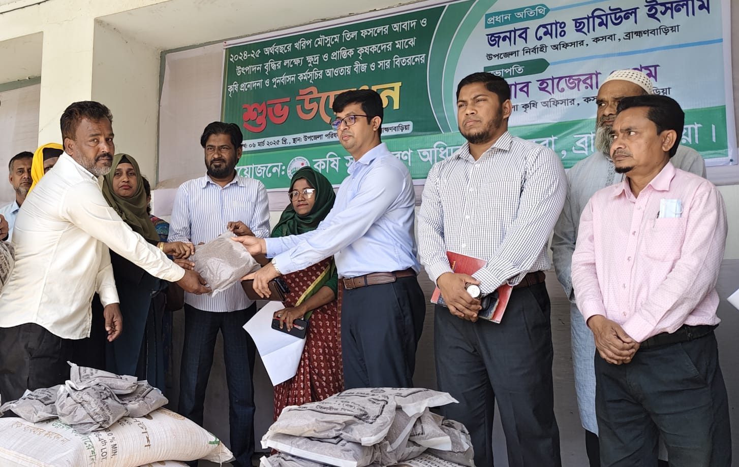 শেখ কামাল উদ্দিন,বিশেষ প্রতিনিধি : ব্রাহ্মণবাড়িয়ার কসবায় কৃষি সম্প্রসারণ অধিদপ্তরের উদ্যোগে খরিপ মৌসুমে তিল ফসলের আবাদ ও উৎপাদন বৃদ্ধির লক্ষ্যে ক্ষুদ্র ও প্রান্তিক কৃষকদের মাঝে কৃষি প্রণোদনা ও পুনর্বাসন কর্মসূচির আওতায় বিনামূল্যে তিল বীজ ও সার বিতরণ কার্যক্রম উদ্বোধন করা হয়েছে। বৃহস্পতিবার (০৬ মার্চ) সকাল ১১টায় কসবা উপজেলা পরিষদ চত্ত্বরে উপজেলা কৃষি অফিসার হাজেরা বেগমের সভাপতিত্বে অনুষ্ঠানে প্রধান অতিথি ছিলেন কসবা উপজেলা নির্বাহী অফিসার মো. ছামিউল ইসলাম। বিশেষ অতিথি ছিলেন, কসবা উপজেলা মৎস কর্মকর্তা মো. মেহেদী হাসান, কসবা প্রেসক্লাব সভাপতি মো. আবুল খায়ের স্বপন, উপজেলা কৃষি সম্প্রসারণ কর্মকর্তা তাপসী রাবেয়া। এসময় উপকারভোগী কৃষক-কৃষাণি, কৃষি সম্প্রসারণ অধিদপ্তরের কর্মকর্তা-কর্মচারী ও প্রিন্ট ও ইলেকট্রিক মিডিয়ার সাংবাদিক উপস্থিত ছিলেন।