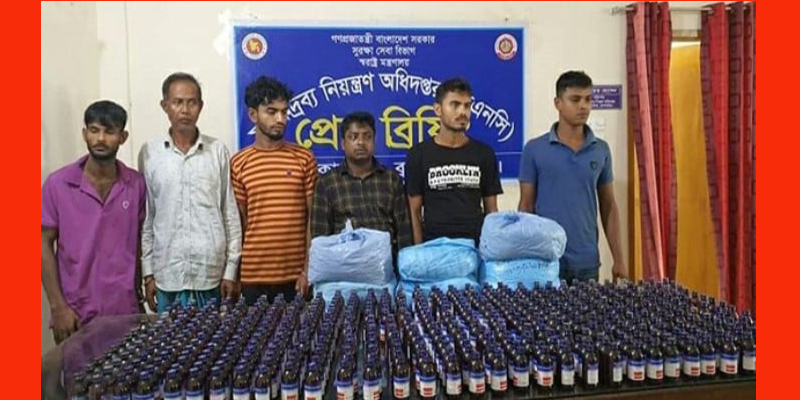 জাকারিয়া জাকির : ব্রাহ্মণবাড়িয়ার আখাউড়ায় ১৩ কেজি গাঁজা, ৪৫৮ বোতল ভারতীয় ইস্কফ সিরাপ এবং ১০ বোতল ফেন্সিডিলসহ ৬ মাদক পাচারকারীকে গ্রেপ্তার করা হয়েছে। বিজিবির সদস্যদের সহায়তায় মাদক নিয়ন্ত্রণ অধিদপ্তর,ব্রাহ্মণবাড়িয়ার সদস্যরা তাদেরকে গ্রেপ্তার করে। গত শুক্রবার গভীর রাতে উপজেলার আনোয়ারপুর গ্রামের একটি লিচু বাগানে অভিযান চালিয়ে তাদেরকে গ্রেপ্তার করা হয়। এ ঘটনায় আখাউড়া থানায় একটি মামলা দায়ের করা হয়েছে। গ্রেপ্তারকৃতরা হলেন আনোয়ারপুর গ্রামের মো. নাছির উদ্দিন-(৫৫), একই এলাকার মো. এমরান ভূইয়া-(৩২), মো. শুক্কুর মিয়া-(২৫), মো. মোক্তার হোসেন-(২৩), মো. গালিব মিয়া-(২৬) ও উপজেলার কুড়িপাইকা গ্রামের মো. ইমন মিয়া-(২৪)। শনিবার জেলা মাদক দ্রব্য নিয়ন্ত্রণ অধিদপ্তর, ব্রাহ্মণবাড়িয়া কার্যালয় থেকে পাঠানো প্রেস বিজ্ঞপ্তিতে এই তথ্য জানা গেছে। প্রেস বিজ্ঞপ্তিতে বলা হয়, গোপন সংবাদের ভিত্তিতে এই অভিযান পরিচালনা করা হয়। এ ঘটনায় আখাউড়া থানায় একটি মামলা দায়ের করা হয়। এ ব্যাপারে মাদক দ্রব্য নিয়ন্ত্রণ অধিদপ্তর, ব্রাহ্মণবাড়িয়ার সহকারী পরিচালক মো. মিজানুর রহমান বলেন, গ্রেপ্তারকৃতরা পেশাদার মাদক ব্যবসায়ী। গোপন সংবাদের ভিত্তিতে বর্ডার গার্ড বাংলাদেশের সদস্যদের সহায়তায় শুক্রবার রাতে তাদেরকে গ্রেপ্তার করা হয়।