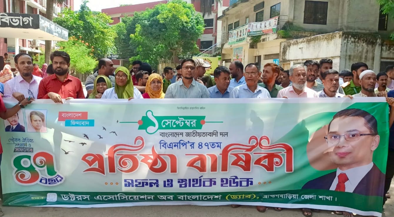 সোমবার (১ সেপ্টেম্বর) সকাল ১১টায় ডক্টরস অ্যাসোসিয়েশন অব বাংলাদেশ (ড্যাব) ব্রাহ্মণবাড়িয়া জেলা শাখার উদ্যোগে এ কর্মসূচির পালন করা হয়।
