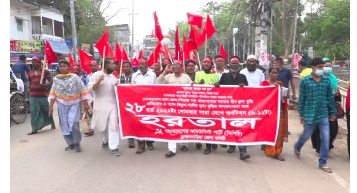 ভোজ্যতেল সহ নিত্যপ্রয়োজনীয় খাদ্যপণ্যের লাগামহীন মূল্যবৃদ্ধি ও গ্যাস, পানি, বিদ্যুতের মূল্যবৃদ্ধির অপতৎপরতা বন্ধের দাবীতে ব্রাহ্মণবাড়িয়ায় ঢিলেঢালা ভাবে অর্ধদিবস হরতাল পালন হয়েছে। সোমবার সকাল ৬ টা থেকে দুপুর ১২টা পর্যন্ত বাংলাদেশ কমিউনিস্ট পার্টির ডাক দিয়েছিল।