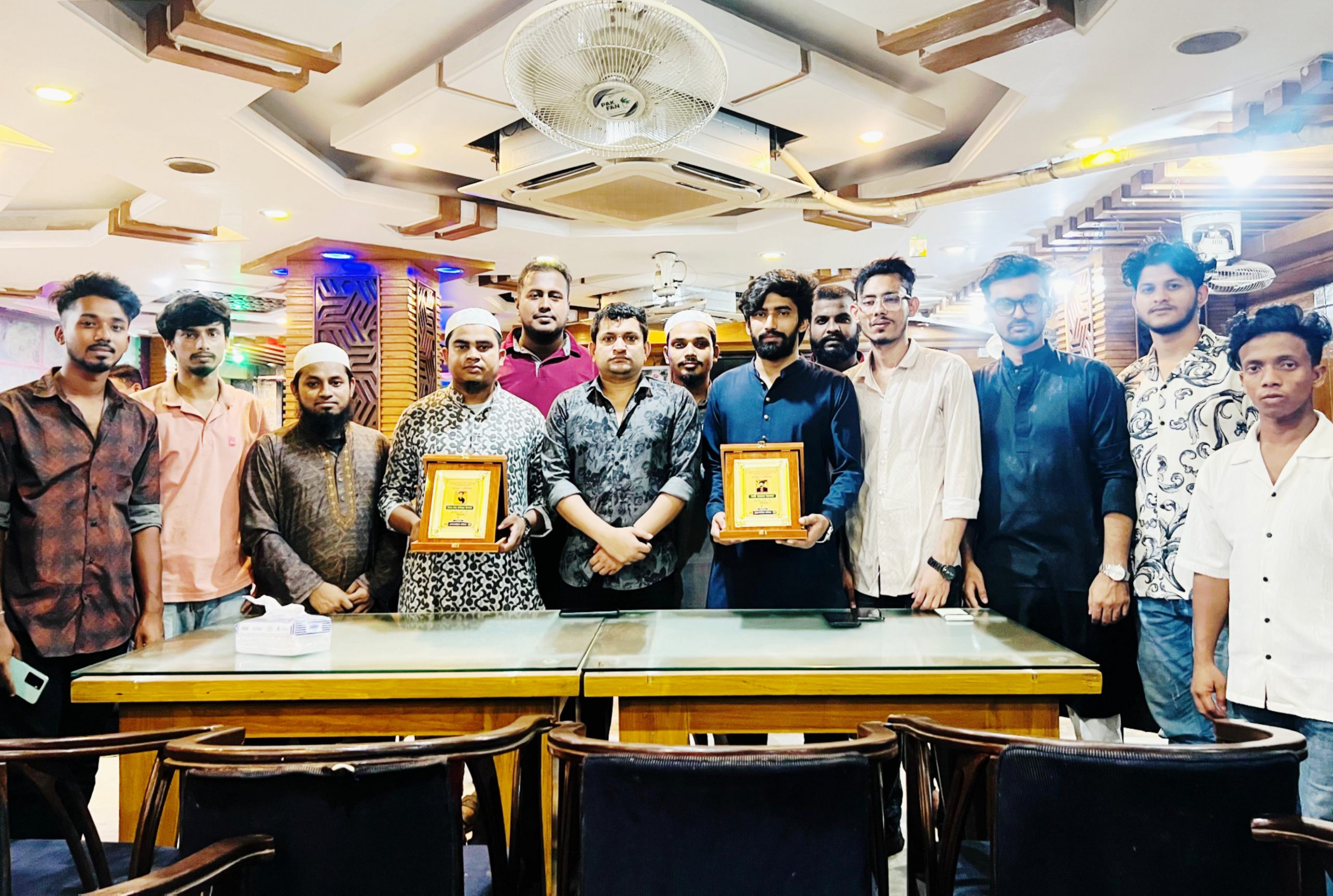 সোমবার (১ সেপ্টেম্বর) রাত ৮টায় শহরের কুমারশিল মোড়স্থ ক্যাফে হাসানে এক আয়োজনের মাধ্যমে তাঁদের হাতে এ সম্মাননা তুলে দেওয়া হয়।