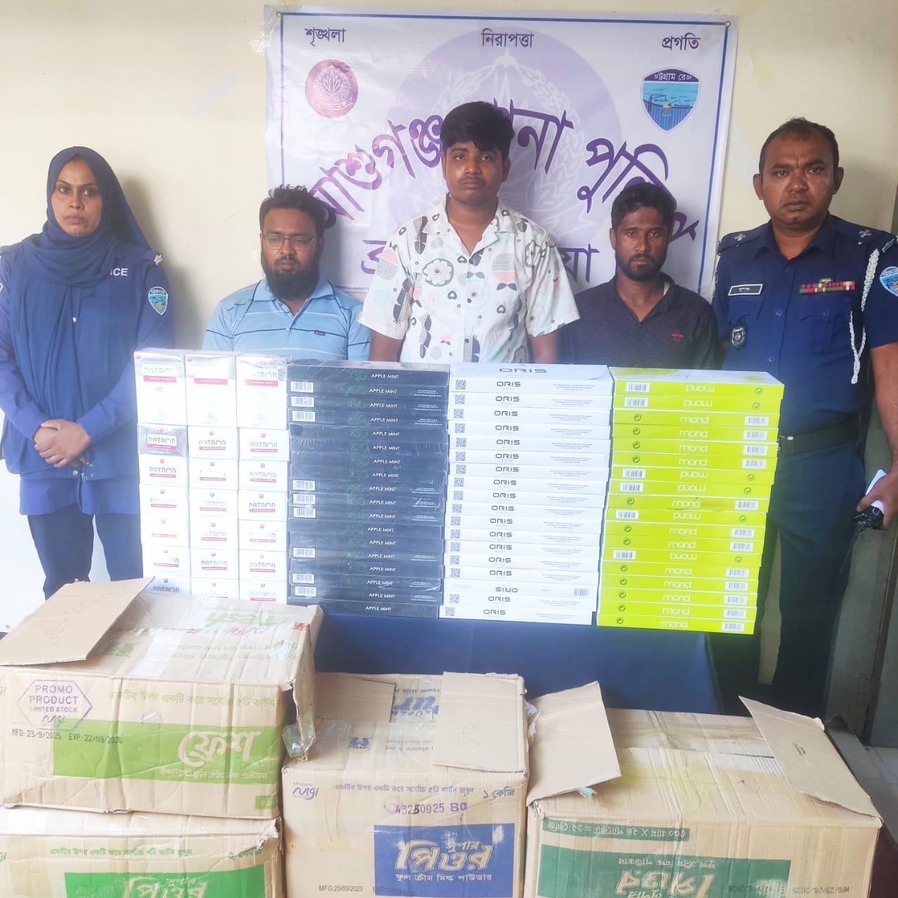 মোঃনিয়ামুল ইসলাম আকঞ্জি,ব্রাহ্মণবাড়িয়া : ব্রাহ্মণবাড়িয়ার আশুগঞ্জে চোরাচালানকৃত বিদেশী সিগারেট উদ্ধার ও ৩ চোরাচালানীকে গ্রেফতার থানা পুলিশ।