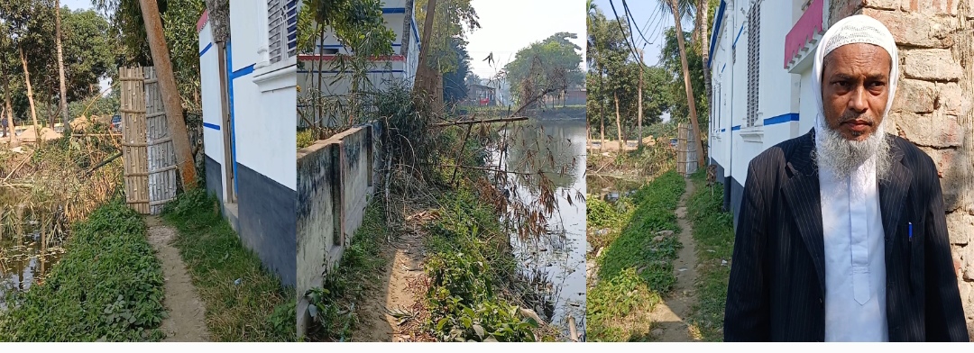সরজমিনে প্রত্যক্ষ করে দেখা গেছে কাজল মিয়ার বাড়ির পেছনে পুকুর ঘেঁষা হাঁটা চলার জন্য প্রায় দুই ফুট একটি প্রশস্ত রাস্তা গ্রামের মূল সড়কের সাথে গিয়ে মিশেছে। এই সড়কে যাওয়ার আগে অভিযুক্ত প্রতিবেশী বাঁশের বেড়া দিয়ে রেখেছেন একসপ্তাহ যাবত। ফলে নিজের চিকিৎসাসহ পরিবারের অন্যান্য প্রয়োজনে বাড়ি থেকে বের হতে পারছেন না তারা।