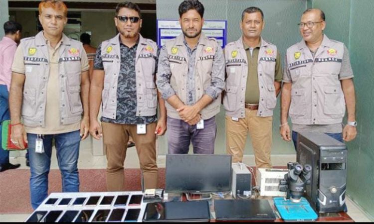তাদের কাছ থেকে একটি মাইক্রোসকপি,একটি কম্পিউটার, দুটি ল্যাপটপ, ১৯টি বিভিন্ন ব্র্যান্ডের অ্যান্ড্রয়েড মোবাইল (৫টি মোবাইল প্রকৃত মালিকদের কাছে হস্তান্তর করা হয়েছে), একটি মোবাইলের আনলক করার সফটওয়্যার ডিভাইস, একটি আইএমইআই পরিবর্তনের সফটওয়্যার ডিভাইস, ৪টি ডাটা ক্যাবল, একটি পাওয়ার মেশিন, একটি হিটার মেশিন ও একটি রাউটার উদ্ধার করা হয়।