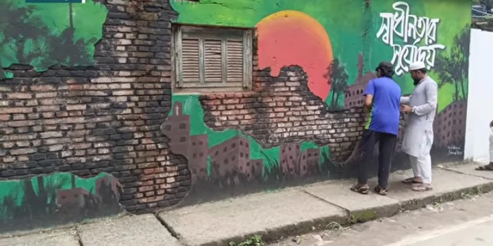 উসাইদ মুহাম্মদ আরও জানান, বৈষম্যবিরোধী ছাত্র আন্দোলনে যখন শেখ হাসিনা পদত্যাগ ত্যাগ করে দেশে ছাড়েন তখন থেকে নতুনভাবে দেশ স্বাধীনতা পায়। গত বৃহস্পতিবার তারই একাডেমির সদস্যদের নিয়ে ঢাকা শহীদ মিনারে যান ক্যালিগ্রাফি করতে। কিন্তু সেখানে চারুকলার কয়েকজন ছাত্র ও শিক্ষক মিলে শহীর মিনার প্রাঙ্গণে ক্যালিগ্রাফি করতে দেননি এবং অপমান করে চলে যেতে বলেন। তখন তাদের এই ৫০ জনের দলটি ক্যালিগ্রাফি করার জন্য পুরো বাংলাদেশে ছড়িয়ে পড়ে। আর তারই ন্যায় উসাইদ ও তার একাডেমির একজন সদস্য জুনায়েদ আহমেদ ব্রাহ্মণবাড়িয়া জেলা শহরের চলে আসেন। তারপর শহরের দক্ষিণ মৌড়াইলস্থ পাবলিক লাইব্রেরির পশ্চিম পাশের মিশন হাসপাতালে একটি পুরাতন দেয়ালে ছবিটি অঙ্কন করেন।