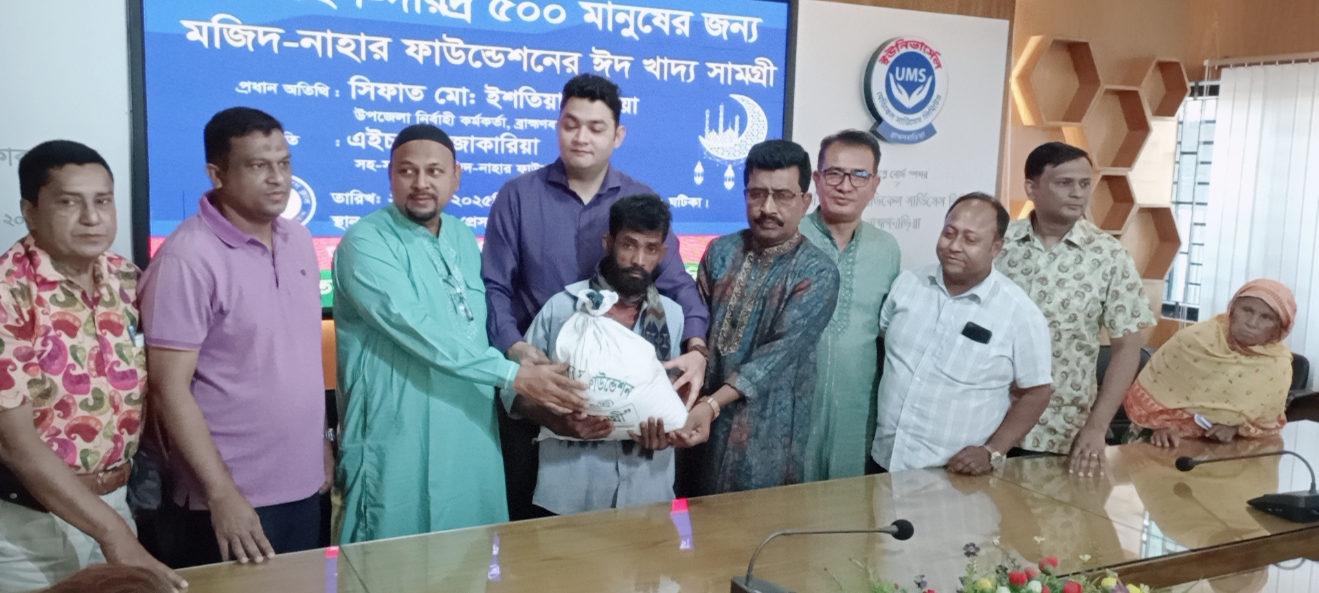 সোমবার (২৪ মার্চ) দুপুরে ব্রাহ্মণবাড়িয়া প্রেসক্লাব মিলনায়তনে মজিদ-নাহার ফাউন্ডেশনের উদ্যোগে এই ঈদ উপহার সামগ্রী বিতরণ করা হয়। এর মধ্যে ছিল চাল, আটা, তেল, দুধ, চিনি, সেমাই, ট্যাংসহ ১০ ধরনের খাদ্য সামগ্রী।